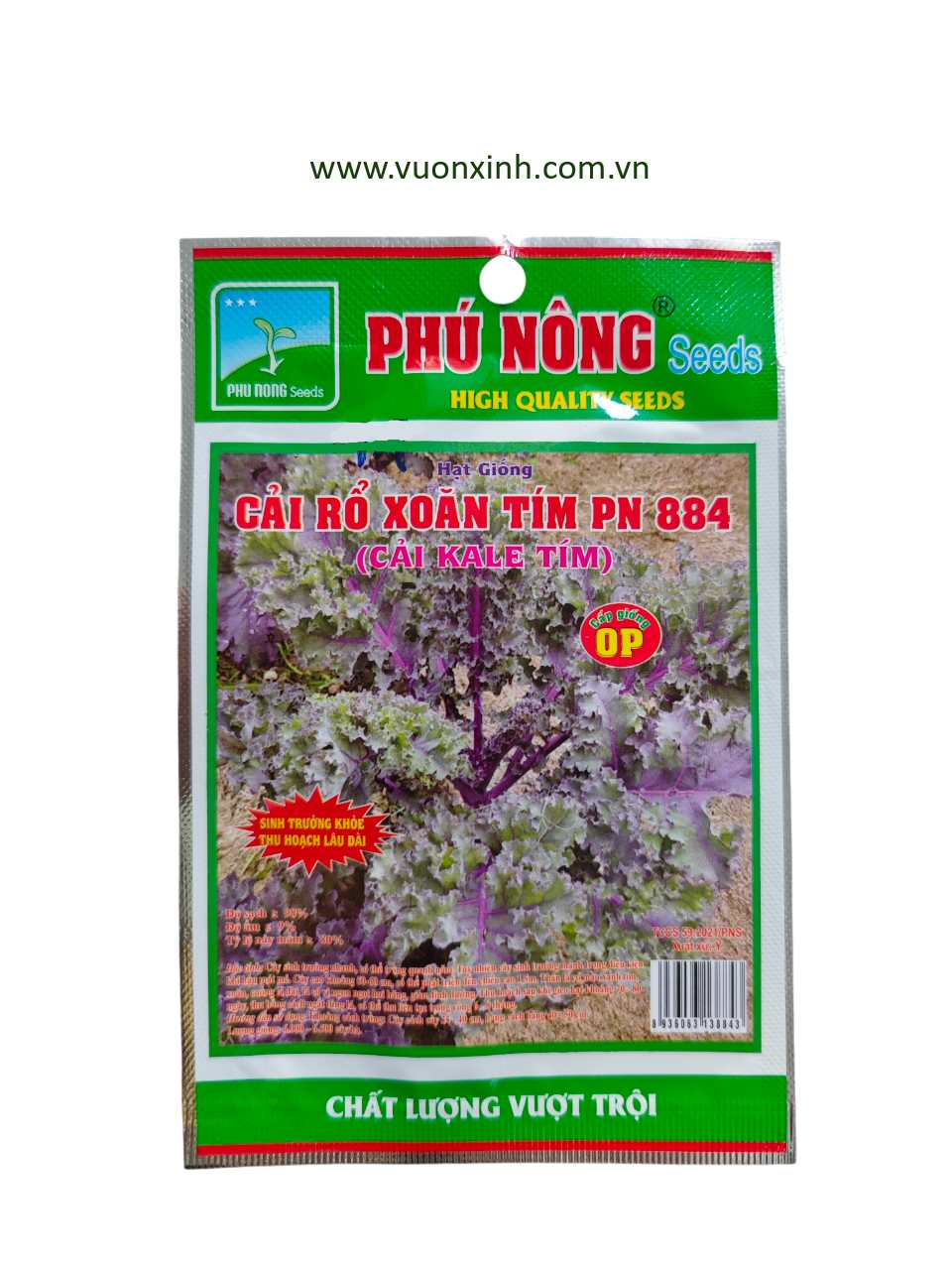 Hạt giống Cải Kale tím PN 884 là giống tăng trưởng nhanh, có thể quanh năm. Cây sinh trưởng mạnh trong điều kiện khí hậu mát mẻ. Cây cao khoảng 50-60cm, có thể phát triển đến chiều cao 1,5m. Thân lá có màu xanh tím, có thể thu hoạch bằng cách ngắt từng lá, có thể thu hoạch liên tục trong vòng 6 tháng.