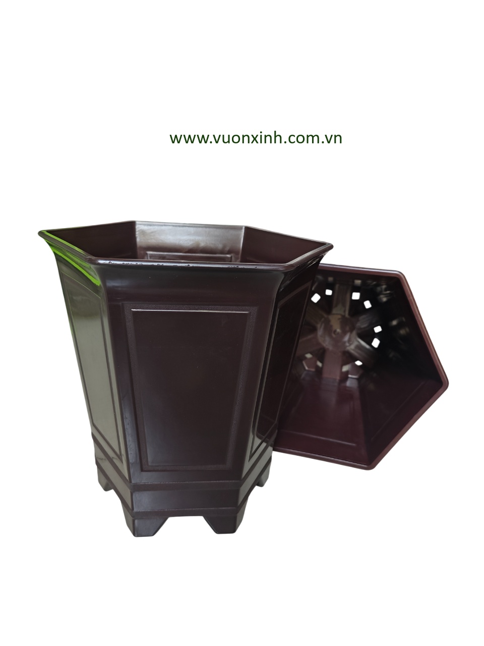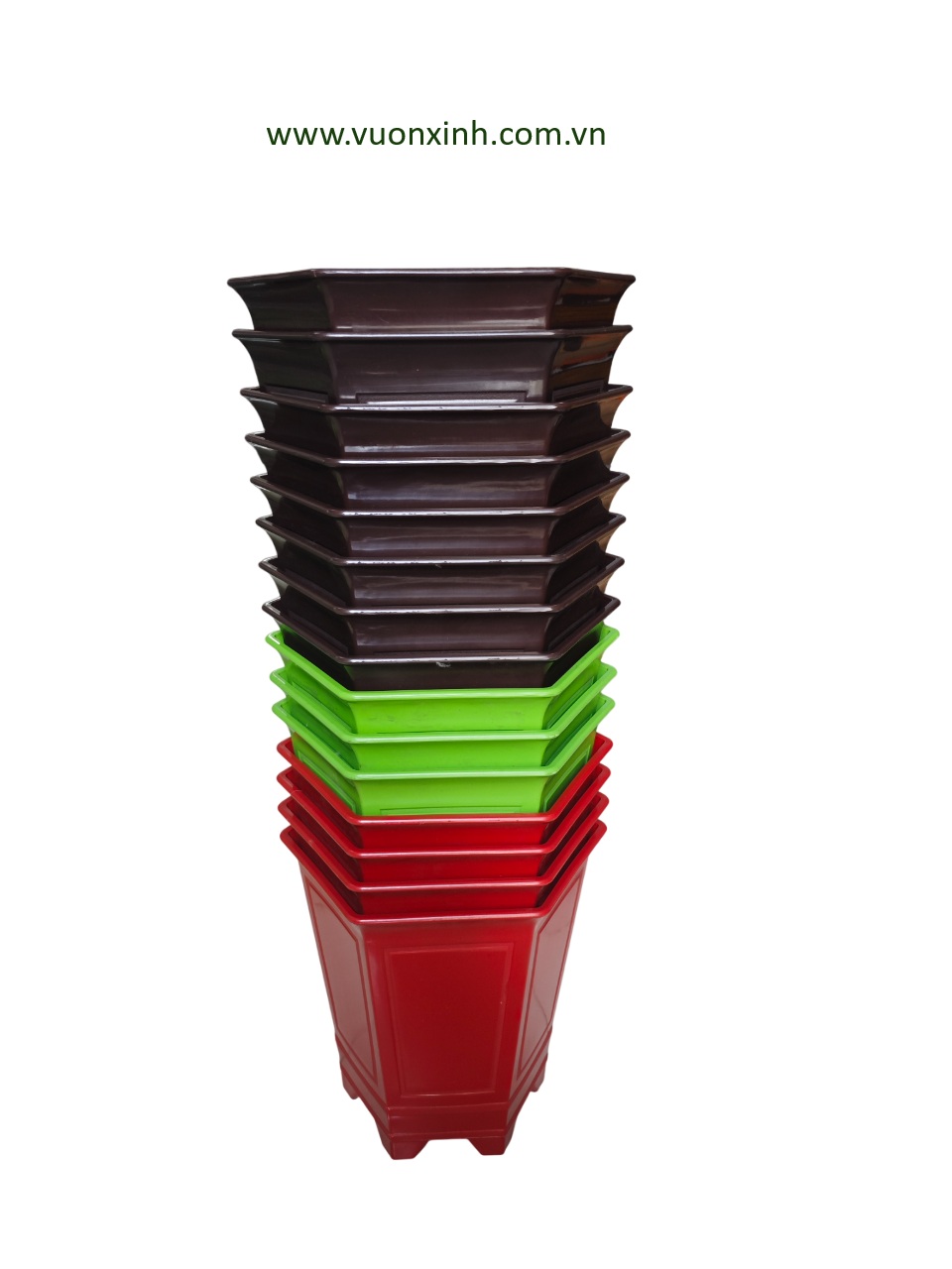 – Chậu nhựa lục giác có 8 cạnh, trơn, đơn giản không họa tiết.. góp phần tô điểm cho không gian nhà bạn thêm sinh động và tràn đầy sức sống.
