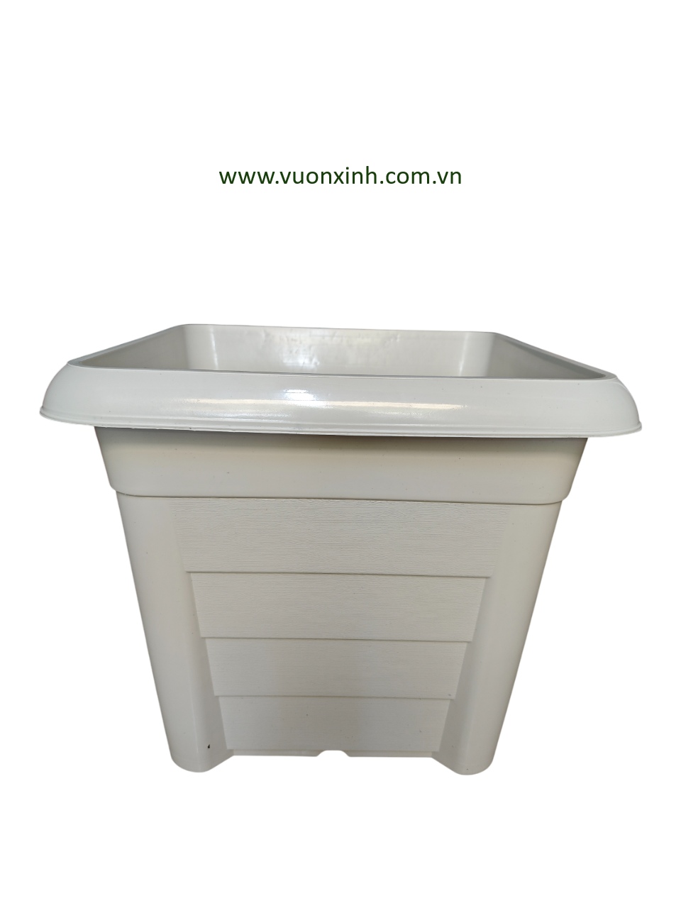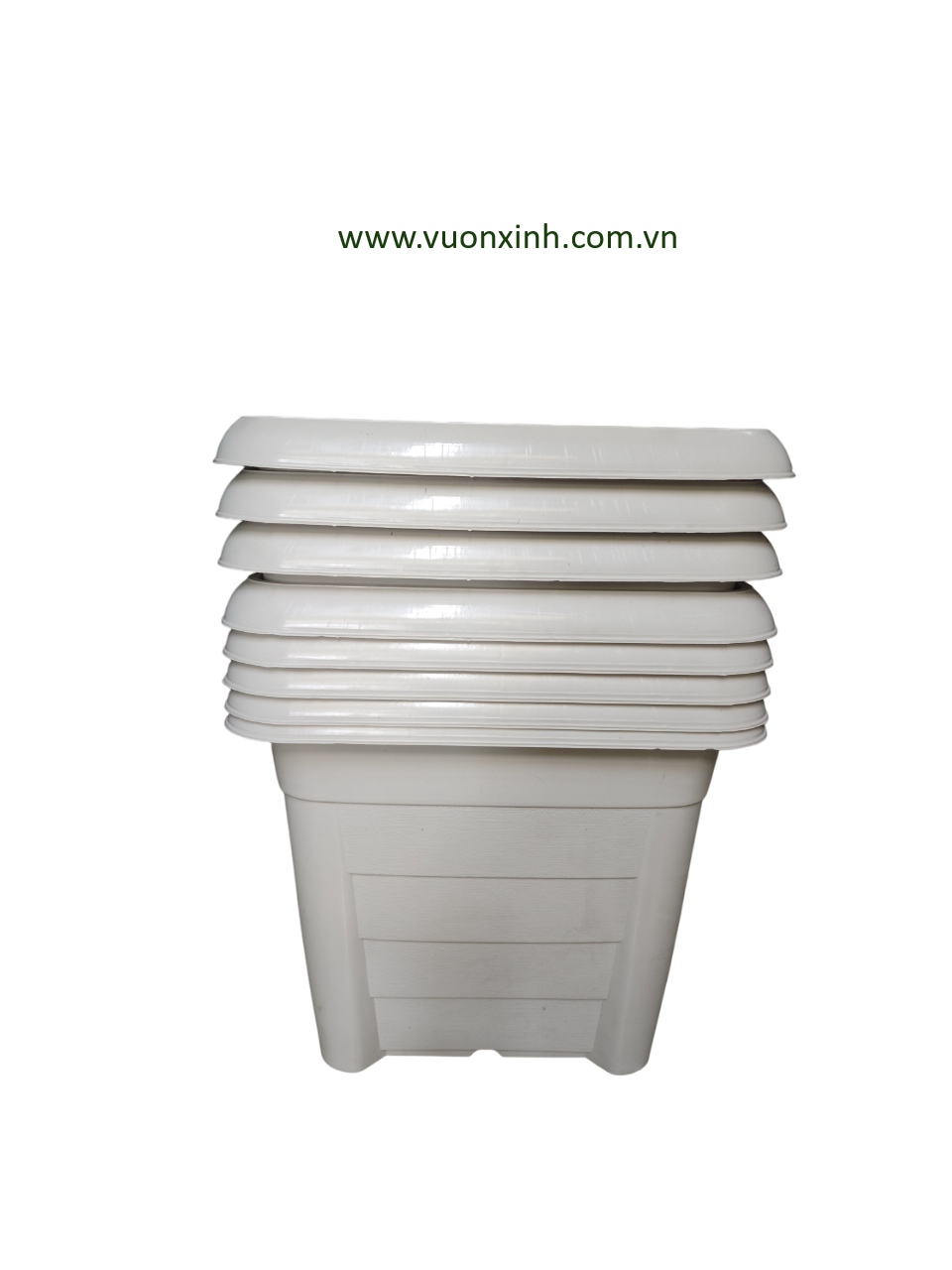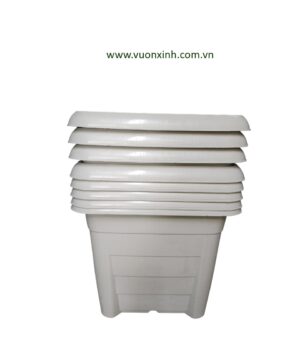 Chậu nhựa vuông lớn màu trắng dùng trồng các loại cây, hoa trên ngoài sân, trong nhà, balcon, cửa sổ hoặc làm các chậu trang trí trong văn phòng, lancan, lối đi tại các văn phòng công ty, thuận tiện cho việc di chuyển, xếp đặt, nhẹ nhàng.