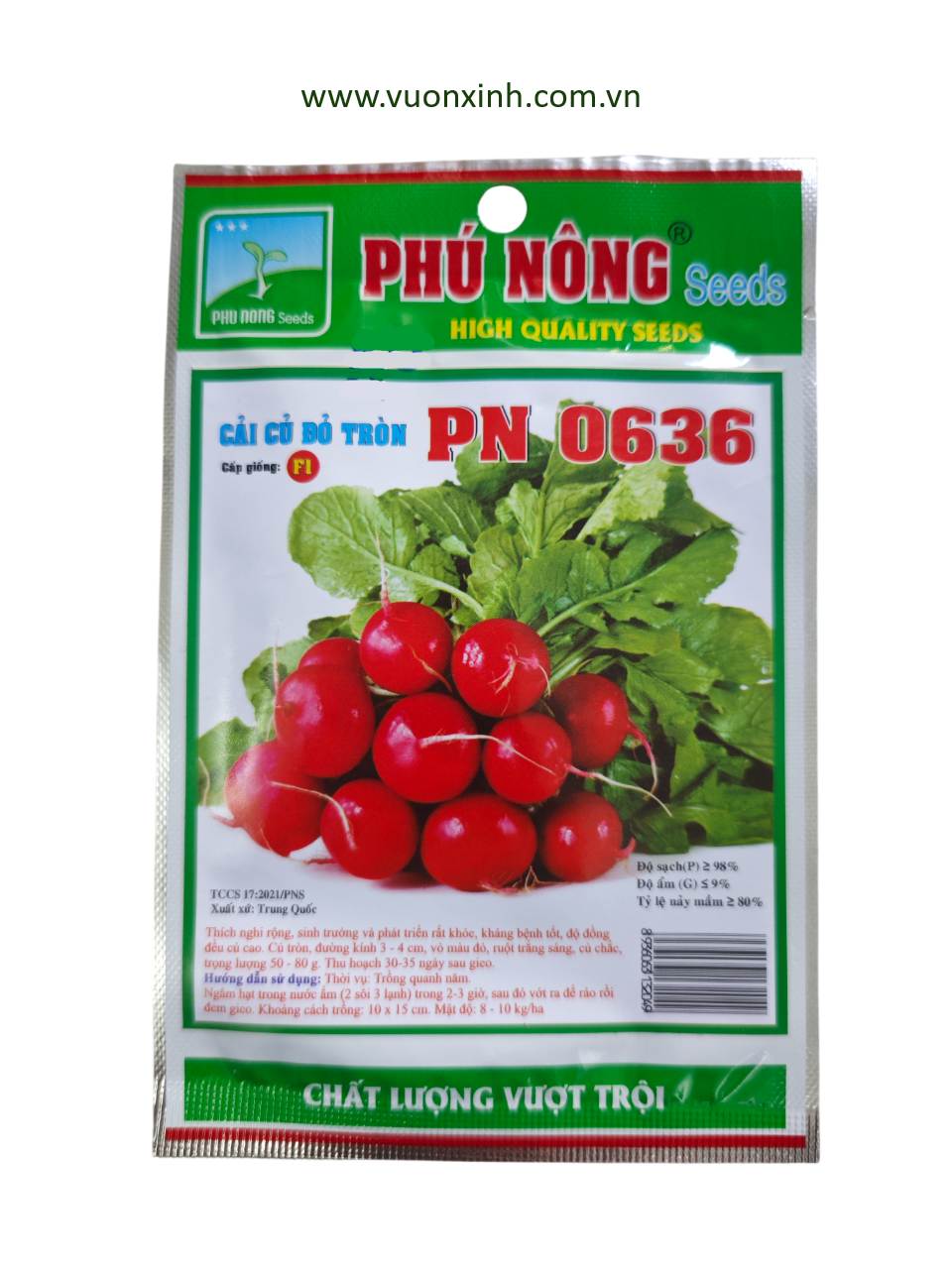 Hạt Giống Củ Cải Đỏ Tròn PN 0636 là giống củ cải dễ trồng, sinh trưởng mạnh, cho củ tròn đều, vỏ đỏ đẹp, ruột trắng giòn và vị ngọt thanh. Thời gian thu hoạch nhanh chỉ 30 – 35 ngày, phù hợp trồng tại nhà, vườn rau sạch hoặc canh tác nông trại. Hạt giống chất lượng cao, tỷ lệ nảy mầm tốt, giúp bạn dễ dàng có được vụ mùa bội thu.