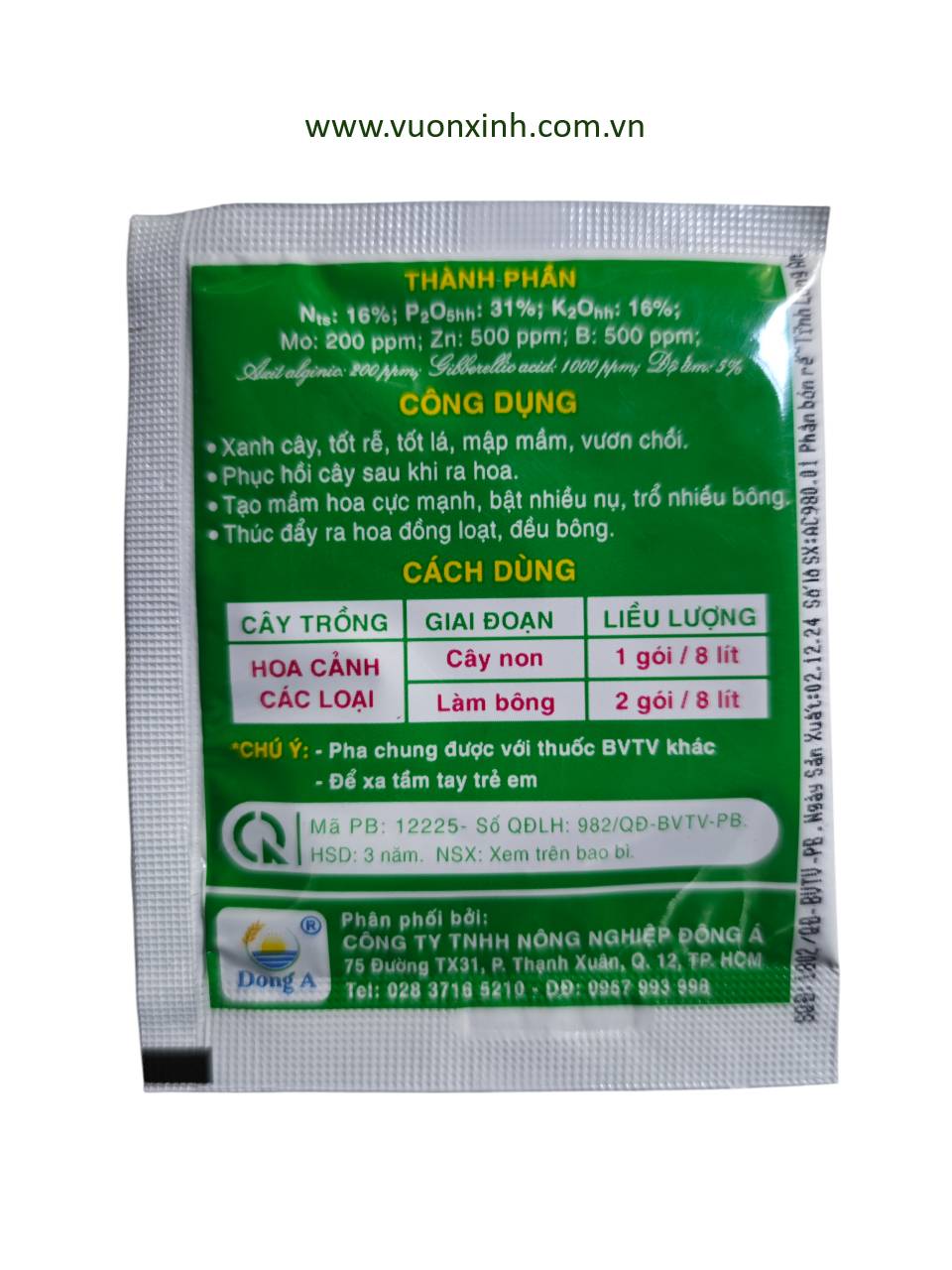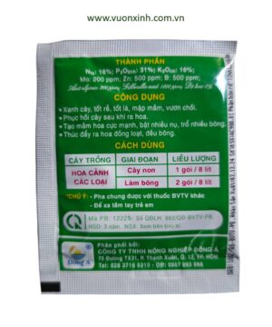 – Giai đoạn cây non: pha 1 gói Micro Green 16-31-16 vào 8 lít nước sạch.