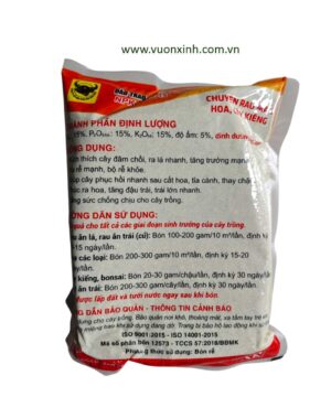 Nts: 15%; P2O5hh: 15%; K2Ohh: 15%; Độ ẩm: 5%; Dinh dưỡng đặc biệt