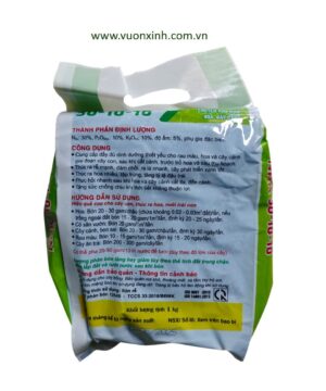 * Thành phần: Nts 30 %; P2O5hh 10 %; K2Ohh 10 %, độ ẩm 5%