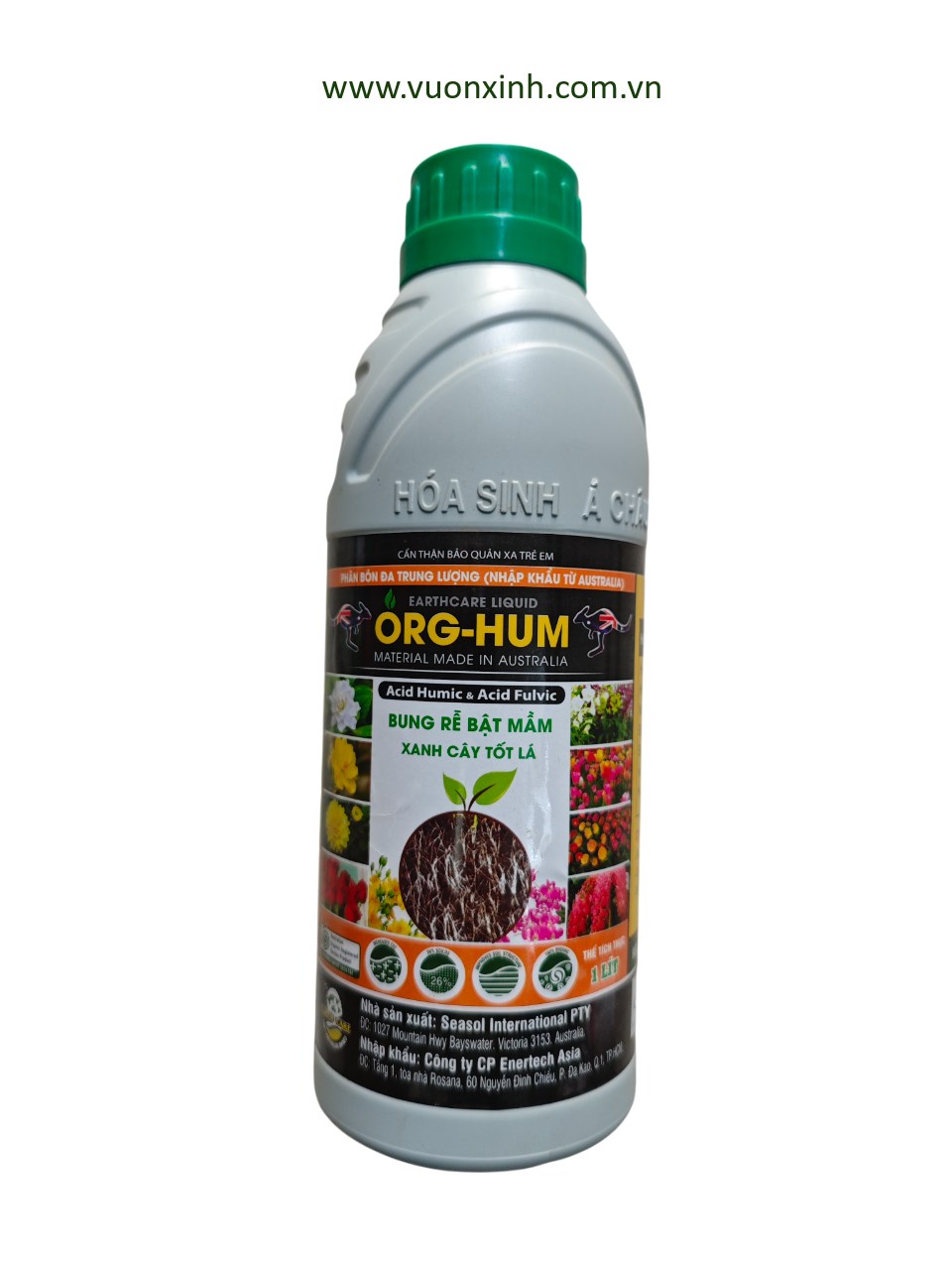 ORG-HUM nhập khẩu từ Úc được chiết xuất từ acid Humic và acid Fulvic giúp cây ra rễ mạnh, bật nhiều mầm chồi, tốt cây xanh lá, ra nhiều hoa, màu sắc sặc sỡ, tạo đất tơi xốp, phục hôi cây suy, kéo dài tuổi thọ cây trồng… tăng sức kháng nấm khuẩn…
