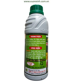 Nts: 14%; K2Ohh: 9% và các phụ gia đặc biệt được chiết xuất từ cá hồi. Nên rất giàu vitamin, axit amin, Boron, Calcium, Zinc, Iron, Manganese, Molybdenum với Sodium. Còn có các hoocmon tăng trưởng hữu cơ khác.