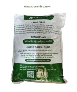 100% phân trùn quế nguyên chất: giàu hàm lượng chất hữu cơ, chất mùn, chứa đầy đủ các nguyên tố đa, trung, vi lượng, hệ vi sinh vật kháng bệnh và cố định đạm.