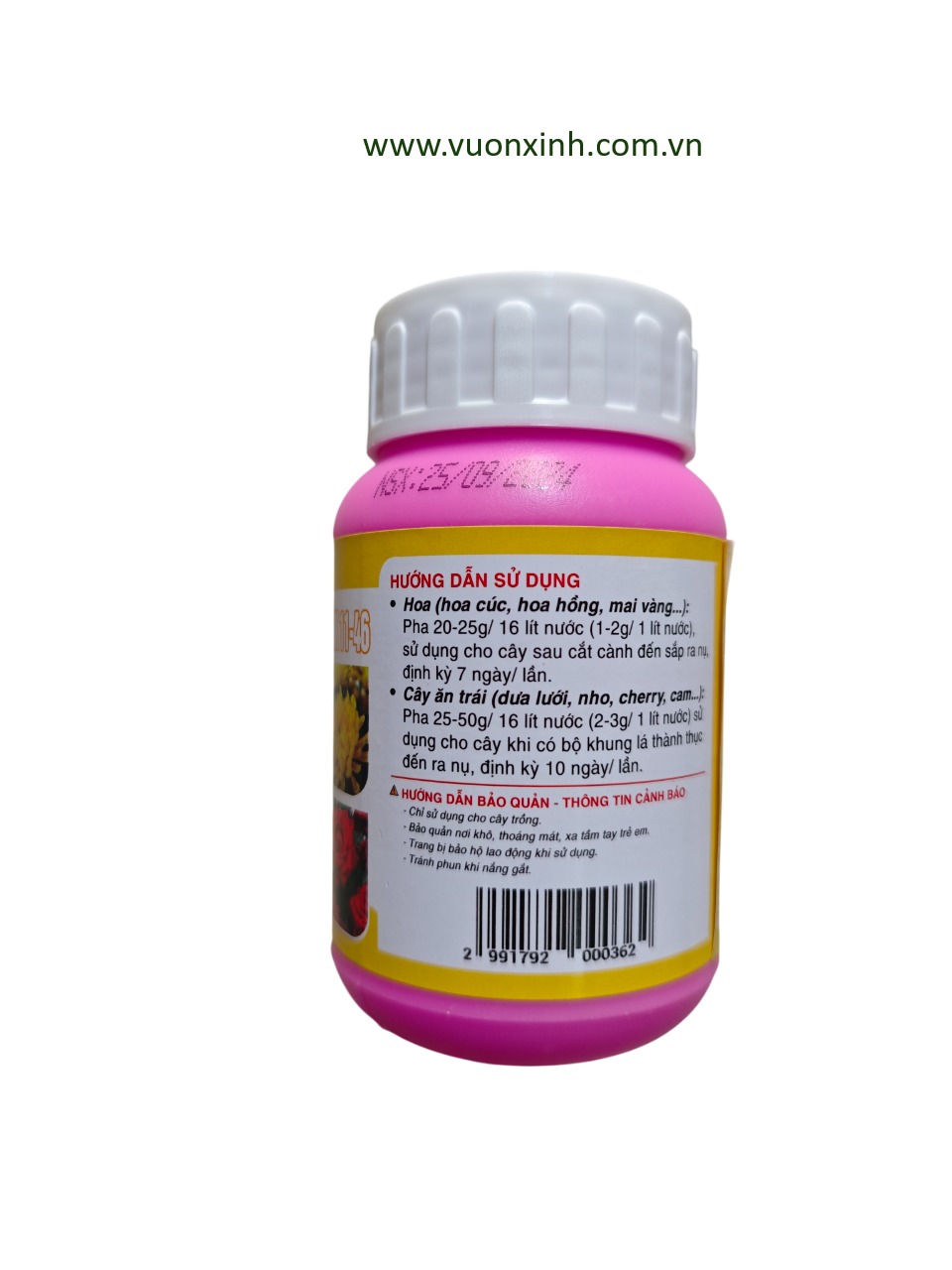 Pha 25-50 gam/25 lít nước (1-2 gam/1 lit nước), sử dụng cho cây sau cắt cành đến sắp ra nụ, định kỳ 7 ngày phun 1 lần.