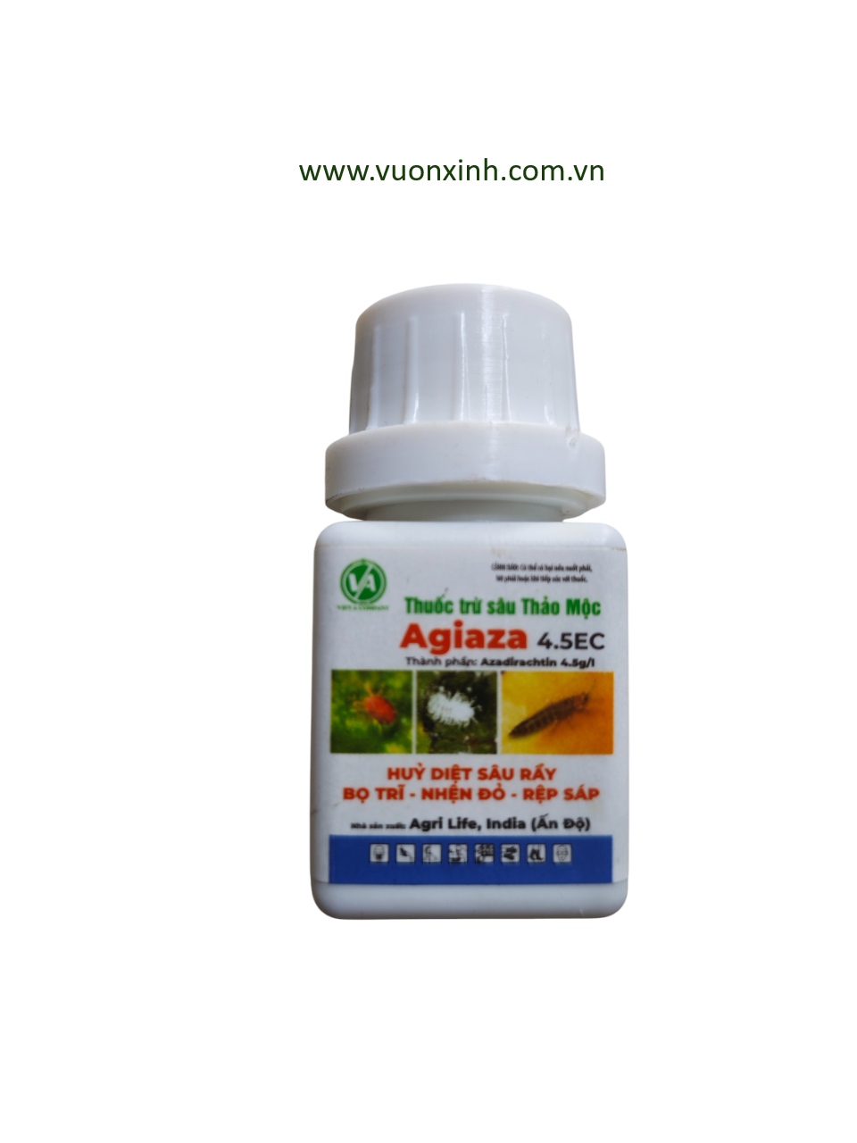 – Thuốc trừ sâu Agiaza 4.5ec có tính  mạnh qua hệ thần kinh ngăn sâu hại, làm bất lực, ức chế sinh trưởng sâu, rầy, nhện, rệp, sâu đục thân, sùng, sâu đục củ, bọ trĩ,nhện đỏ …….có thể diệt được nhiều loại sâu trên nhiều loại cây trồng như đục thân , đục quả , ăn lá và chích hút .