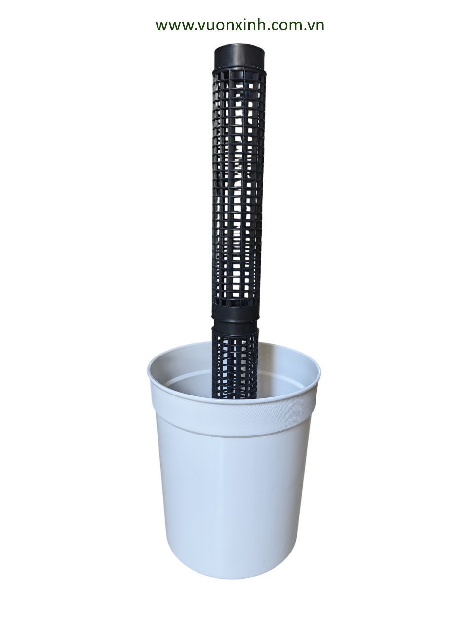 Gía thể đẻ làm trụ: với thiết kế chuyên biệt dạng lưới rỗng bên trong giúp chúng ta có thể cho giá thể như rêu rừng, dớn trắng, phân tan chậm vào bên trong trụ tạo giá thể cho cây bám vào hút nước và chất dinh dưỡng. Thiết kế này cũng giúp cho chúng ta có thể dễ dàng tưới nước từ đỉnh trụ cho cây, tránh làm bẩn lá cây.